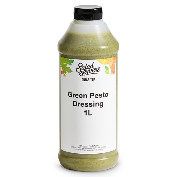A ready to serve salad dressing consisting of pesto sauce, vinegar, oil, salt, garlic, mustards and cracked pepper.