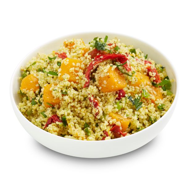Roasted pumpkin & couscous with fresh vegetables in a refreshing dressing.